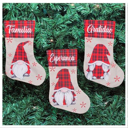 Trio De Bota Meia Enfeite Natalino Xadrez Temático 47cm -