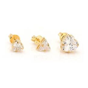 Brinco folheado a ouro com zircônia. Este anúncio é para 3 pares 6 peças . Tamanhos: coração de 6 mm triângulo de 5 mm ponto de luz de 4 mm lindo para crianças, segundo furo e terceiro furo. Consulte o logo abaixo do valor do produto. Marca: Não Informado Ean: 7892238462834