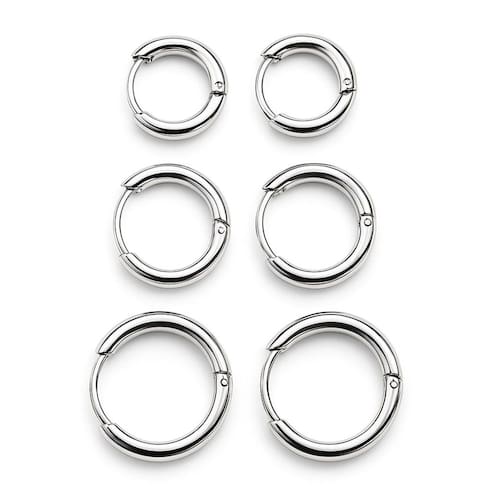 Kit três pares de Brincos Argola Itens inclusos: 3 pares de argolas Diâmetro externo: 14mm, 16mm e 18mm Material: Aço Inoxidável 316L Características do Aço Inox 316L: - Hipoalergênico - Não escurece - Não oxida - Pode molhar - Acabamentos variados - Brilho de alta qualidade - Resistente a riscos - Fácil de limpar - Maior durabilidade Marca: Não Informado