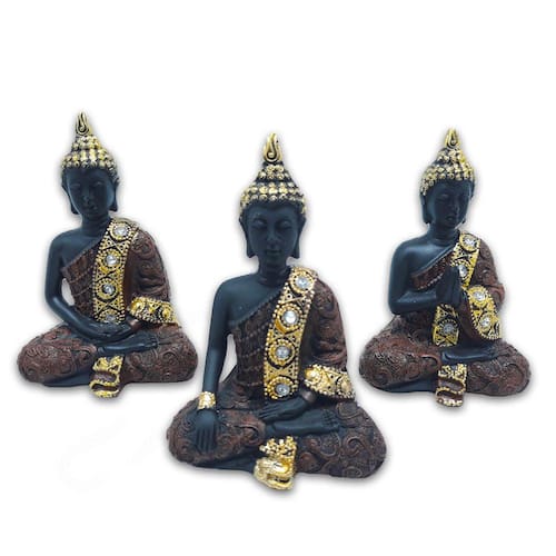 Enfeite composto de 3 Budas tailandeses cada um com 12 cm de altura.
