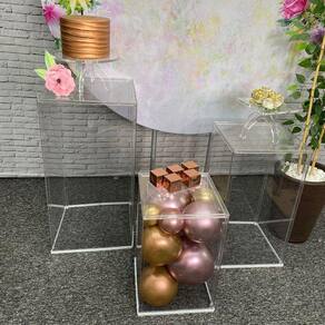 Trio Cubos Cilindro Transparentes Decoração Eventos
