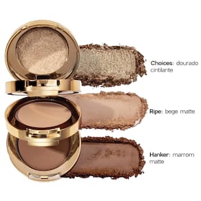 Três cores versáteis em um único estojo Pigmentação intensa e fácil de esfumar Acabamento sofisticado e de longa duração Compacto e prático para o dia a dia