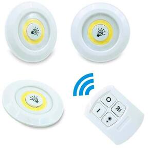 Trio Luminária Led Spot Adesiva Sem Fio + Controle Branco