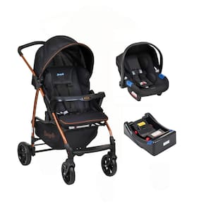 Conjunto 3 em 1: carrinho, bebê conforto e base veicular