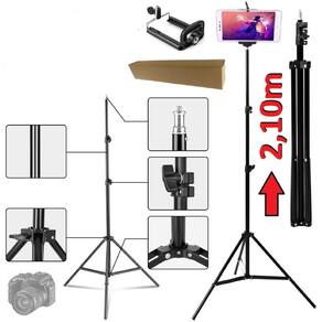 Tripé 2,10m profissional câmera e celular pedestal robusto para iluminador luz ring light + suporte celular youtuber Tripé com eletrônica Tripé 2,10m câmera celular pedestal universal youtuber + suporte celular Tripé robusto de alta qualidade, possui molas internas para amortecimento, braçadeiras reforçadas em nylon, altura de 2,10 mts, abertura dos pés de 88 cm promovendo boa estabilidade, pino 5/8 com rosca 1/4 para usar diversos tipos de equipamentos.Pintura preta, tornando - o mais discreto no ambiente de cine & foto.Reforçado, chegando a suportar 6 kg , pode ser com diversos equipamentos de iluminação. acompanha suporte para celular universal de acompanha . Além disso este tripé é um modelo muito recomendado para utilização junto a equipamentos fotográficos e iluminação, uma vez que possui uma estrutura resistente com composta por materiais de alumínio e partes plásticas, conseguindo alcançar uma altura máxima de 2,10 metros e mínima de 68cm quando totalmente fechado, pesando somente cerca de 780 gramas, sendo portanto, carregado com muita facilidade e praticidade. O tripé de iluminação tpi-200 ainda possui 3 seções e 3 travas, que proporcionam ao usuário uma regulagem na altura, de forma que possibilite ao mesmo criar diversos modos de uso, conforme a necessidade de operação em cada um de seus trabalhos. O kit contém: 1 tripé de até 2,10m de alcance 1 suporte para celular Marca: Não Informado Ean: 7895555444705