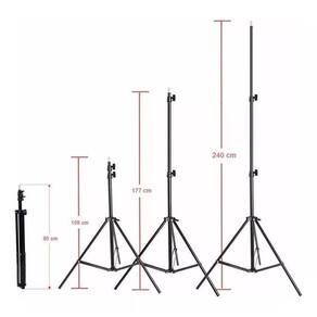 Tripé de iluminação yh 804 (altura máxima 240 cm) Tripé yh 804 com três seções em alumínio anodizado em preto, com rosca fina ¼ (rosca/parafuso universal) , para os iluminadores, soft box (haze), flash de estúdio, sombrinhas com adaptador para tripé. As seções do tripé são travadas com tensionadores especiais fabricados em plástico resistentes, travas por pressão única. Possui sistema levemente de amortecimento com molas em caso de soltura das travas, altura máxima 2,40m. Altura mínima 90 cm. Peso 1,20 kg. Carga máx. 4,5 kg. Conteúdo da embalagem: Contém um tripé para estúdio yh 804 Características: Cor: preta Modelo: yh 804 Tripé em alumínio anodizado Altura máxima: 240 cm Altura mínima: 90 cm Peso: 1.040 kg Suporta: 4,5 kg