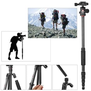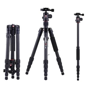 O compacto Tripé e Monopé de Fotografia Kingjoy K029 Fibra de Carbono com Cabeça Ball V00 e Placa de Liberação Rápida é pequeno, super leve, portátil, feito em Fibra de Carbono pesando apenas 1.08kg, vira Monopé com um Clique, possui grande estabilidade estrutural, o Tripé suporta equipamentos de 10kg e Cabeça Ball suporta equipamentos de até 5kg, ideal para viagens. Possui uma altura máxima de 1.42m, seu sistema de travamento de placa de liberação rápida torna a montagem muito mais prática. A sensação de amortecimento é suave ao girar para cima e para baixo e para a esquerda e para a direita.As pernas do Tripé/Monopé de Fotografia Kingjoy K029+V00 são feitas de fibra de carbono de 8 camadas para minimizar o peso sem sacrificar a força. Para adicionar estabilidade, a coluna central rápida tem um gancho de contrapeso na parte inferior para que você possa pendurar um peso estabilizador, como uma bolsa. Seus Pés de borracha e pontas de aço inoxidável permitem que você use o tripé em uma variedade de superfícies, como grama, gelo ou pisos de madeira e cerâmica. Uma Bolsa de transporte com alça de ombro está incluído para proteger as pernas quando não estão em uso.A Cabeça Esférica Ball incluída possui travas separadas para pan e bola e uma braçadeira compatível tipo Arca com uma placa de liberação rápida. As marcas de grau permitem que você mude rapidamente a orientação da Câmera para a orientação retrato e um nível de bolha integrado no olho de boi ajuda a manter o alinhamento horizontal. A base da Cabeça Esférica Ball se conecta a um tripé ou monopé por meio de uma rosca de 3/8-16 e a Placa de Liberação Rápida fornece uma montagem de Câmera de 1/4-20.Principais Características: Tamanho pequeno, leve, portátil, Comprimento Máximo de 1.42m Feito de Fibra de Carbono de 8 camadas pensando apenas 1.08kg e tripé suportando até 10kg. A altura dobrável do tripé é de 38cm, 5 seções, com o eixo central e o botão de travamento do eixo central O uso de nível de bolha de alta qualidade, fácil de fotografar devido a fatores externos causados pelo tripé instável Cabeça Esférica Ball que suporta até 5kg, com Placa de Liberação Rápida com montagem 1/4