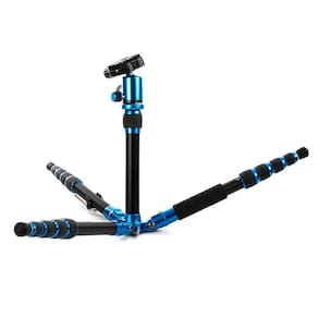Tripé Kingjoy C1229B-Qf00T Fibra De Carbono Cabeça Esférica Ball Head Até 10Kg Azul Este tripé com Cabeça Ball Head KingJoy C1229B-QF00T Fibra de Carbono Azul é pequeno, leve, portátil e de alta qualidade, ele possui estabilidade estrutural e suporta equipamentos de 10kg, ideal para viagens. este é um tripé de última geração, reversível, dobrável e portátil perfeito para fotografar em diferentes ângulos, ele não apenas melhora a estabilidade e a resistência do tripé, mas também dá uma aparência agradável e uma sensação de mão macia e suave.As pernas do Tripé KingJoy C1229B são feitas de Fibra de Carbono para maior durabilidade e estabilização. A coluna central possui um gancho de contrapeso na parte inferior para que você possa pendurar um peso estabilizador para maior estabilidade.Este tripé de Fibra de Carbono possui pés de borracha e permitem que você use o tripé em uma variedade de superfícies, como grama, areia, pisos de madeira e cerâmica entre outros. Uma Bolsa de transporte com alça de ombro está inclusa para proteger o equipamento quando não estiver em uso.Sua cabeça Estérica Ball Head suporta até 6kg de montagem em Tripés e Monopés. Equipado com uma plataforma de liberação rápida de nível de bolha com uma trava confiável para evitar que a câmera caia. Permite girar a câmera em 360 graus para fotografar panoramas. Seu Plate na parte superior tem rosca Universal de 1/4 para Câmeras Fotográficas, Filmadoras, Telescópio, Suportes de SmartPhones entre outros acessórios de Estúdio Fotográfico e de Filmagem.Principais Características: Tamanho pequeno, leve, portátil. Altura Máxima de 1.30m, Altura Mínima de 38cm para equipamentos de até 10kg Feito de Fibra de Carbono para maior durabilidade e estabilização Pernas de 5 seções, com botões de travamento simples e ágeis. o tripé KingJoy C1229B suporta até 10Kg e possui base para cabeça adaptvel de 1/4 para 3/8A cabeça Estérica Ball Head suporta até 6kg e possui movimento 360 Graus Ideal para Filmadoras, DSLRs Profissionais, equipamentos de Iluminação e Áudio
