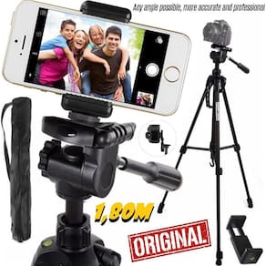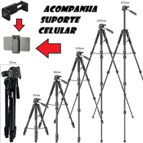 Tripé para celular 1,80m universal profissional câmera suporte pedestal telescópico fotográfico foto vídeo selfie bolsa Atenção só compre produtos com lacrado em sua embalagem . Kit profissional,completo,de qualidade e com eletrônica. Tripé incrível com uma bolsa para transporte do tripé todo em alumínio e com nível para melhor qualidade de seus vídeos e fotos. Incluso também o suporte para colocar o celular no tripé Com este modelo você consegue usar o celular tanto na vertical quanto na horizontal Tripé robusto maior resistência,estabilidade e com ajuste fino Agora com esse acessório suas fotos irão ficar com nível profissional - fabricado em alumínio para facilidade de transporte - universal pode ser por qualquer câmera - suporte para auxiliar na mudança de posição - gancho para prender bolsa com acessórios - manivela para mudança de altura média - travas para fixação da posição - suporte de câmera destacável para agilidade em Fotos sem o tripé ou mudança de acessórios - anel central rosqueado fixa os pés do tripé Impedindo que o mesmo se desmonte Acidentalmente - pés em borracha e ajuste de terreno para Melhor estabilidade - alavanca de ajuste de altura milimétrica - gatilho de saque rápido Tripé telescópico em alumínio, com comprimento fechado de 69 cm e altura máxima de 1,80 mts. Muito Prático e útil com acabamento excelente e bolsa para transporte. Não deixe mais que suas imagens percam O foco. Guarde para sempre os momentos especiais de sua vida com imagens perfeitas e sem tremulações. Seja com câmera, filmadora ou binóculo, o novo tripé telescópico vai surpreender você Especificações - altura mínima: 69cm - altura máxima: 1,80mts - rotação horizontal 360 - rotação vertical 180 - base da câmera pode ficar na posição horizontal ou vertical com 90 de regulagem para este fim. - suporta peso de equipamento até 2,5kg com segurança - 2 níveis dágua para correção de terreno - pernas com ajuste telescópico com travas em 2 estágios - bolsa de transporte com alça Itens inclusos: - 01 tripé telescópico profissional - 01 suporte para celular - 01 bolsa de transporte com alça lacrado em sua embalagem . Marca: Não Informado