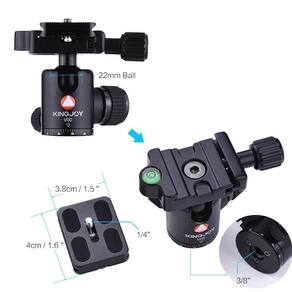 Tripé Portátil Com Cabeça Ball Head Kingjoy K029B+V00 Fibra De Carbono O compacto Tripé Portátil Kingjoy K029B Fibra de Carbono com Cabeça Ball Head V00 e placa de liberação rápida é pequeno, super leve e fácil de transportar. feito em Fibra de Carbono pesando apenas 1.02kg, possui grande estabilidade estrutural e suporta equipamentos de até 10kg, a Cabeça Esférica V00 suporta equipamentos de até 5kg, é ideal para viagens. Possui uma altura máxima de 1.28m, seu sistema de travamento de placa de liberação rápida torna a montagem muito mais prática.As pernas do Tripé de Fotografia Kingjoy K029B são feitas de fibra de carbono de 8 camadas para minimizar o peso sem sacrificar a resistência. para adicionar estabilidade, a coluna central fixa possui um gancho de contrapeso na parte inferior para que você possa pendurar um peso estabilizador, como uma bolsa.Seus pés de borracha e pontas de aço inoxidável permitem que você use o tripé em uma variedade de superfícies, como grama, gelo ou pisos de madeira e cerâmica. Uma bolsa de transporte com alça de ombro está incluído para proteger o equipamento quando não está em uso.A Cabeça Esférica Ball Head V00 incluída possui travas separadas e uma sapata tipo Arca com liberação rápida. As marcas de grau permitem que você mude rapidamente a orientação da Câmera para a orientação retrato e um nivelaor bolha ajuda a manter o alinhamento horizontal. A base da cabeça se conecta a um tripé ou monopé por meio de uma rosca de 3/8 e a Placa de Liberação Rápida fornece uma montagem de Câmera de 1/4.Principais Características: Nivelador bolha eficiente e preciso. Grande estabilidade estrutural, suporta equipamentos de até 10kg Tamanho pequeno, leve, portátil, com comprimento máximo de 1.28m Feito de Fibra de Carbono de 8 camadas pensando apenas 1.02kg. Cabeça Ball Head V00 com Placa de Liberação Rápida que suporta até 5kg.