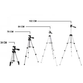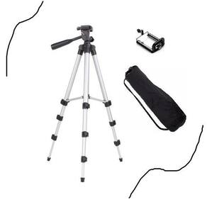 - cor: preto ou prata - aplicação: máquinas fotográficas digitais e videocâmaras com conector para tripé - cabeça móvel para diversos ângulos - nivelador de bolha - pernas em alumínio - altura ajustável em 3 seções em prolongadores com travas - pés emborrachados antiderrapantes - braço para rotação da base da câmera - haste central - altura: estendido: 102 cm, fechado: 34 cm - peso: 400g