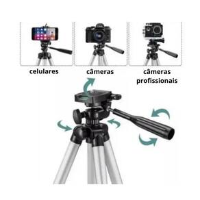 TRIPÉ UNIVERSAL Compatível com: - celular - câmera profissional - smartphone - nível digital e outros equipamentos. Utilize para filmar em qualquer ambiente, compatível com celulares de qualquer tamanho, câmeras de até 1,5Kg e câmeras esportivas como a GO PRO; Utilize em seus filmes para Youtube, fotos, pode ser transportada em sua mochila ou bolsa, feita em alumínio de alta resistência, possui Nível para controle de angulo; Universal pode ser por qualquer câmera, celular ou câmera esportiva ; Suporte para auxiliar na mudança de posição- Manivela para mudança de altura Média; Travas para fixação da posição; Suporte de câmera destacável para agilidade em fotos sem o tripé ou mudança de acessórios; Anel Central Rosqueado fixa os Pés do Tripé impedindo que o mesmo se desmonte acidentalmente ; Pés em borracha e ajuste de terreno para melhor estabilidade; Alavanca de ajuste de altura milimétrica; Gatilho de saque rápido; Nível para acerto de angulo. Especificações Técnicas: Tipo: Tripé Material: Alumínio Indicado Para: Câmeras Fotográficas e Filmadoras Pequenas e Celulares. Capacidade Até : 1,5 Kg Altura máxima: 102 cm Altura mínima: 33 cm Marca: Não Informado