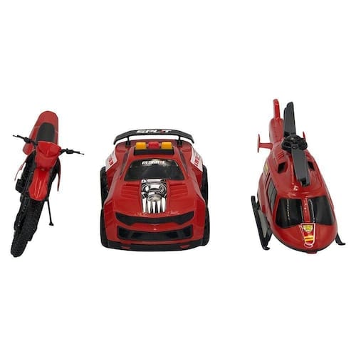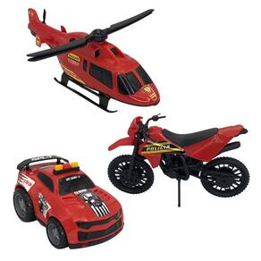 01 KIT DE BRINQUEDO DE POLÍCIA COM CARRO, MOTO E HELICÓPTERO - VERMELHO