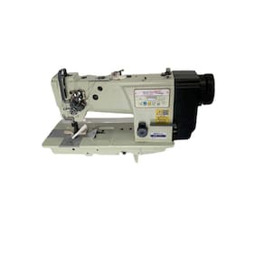 Lançadeira Grande Vertical Máquina Reta 2 Agulhas com ponto fixo, lubrificação automática e transporte triplo por Dente calcador e agulha (evita o franzimento do tecido), indicada para materiais pesados como estofados, couros, lonas, sintéticos entre outros.