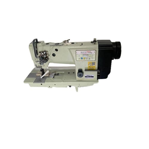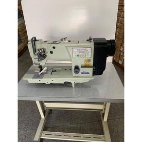 Máquina de Costura Completa com mesa fórmica, pé de ferro e motor acoplado ao cabeçote . Quantidade de agulha 2 Quantidade de linha 2 Tipo de agulha DPx17 #22 Comprimento de ponto 09mm Altura do calcador 12mm RPM 2300 Voltagem 220v Motor Direct Drive / 550W
