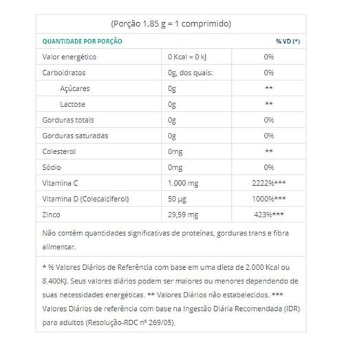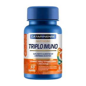Triplo Imuno foi desenvolvido com base nas necessidades nutricionais específicas para indivíduos com 19 anos ou mais. Possui em sua formulação 3 nutrientes (2 vitaminas + 1 mineral): ;Vitamina C ;1.000 mg + ;Vitamina D ;2.000 UI + ;Zinco ;29,59 mg.