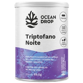 Triptofano Noite – Ocean Drop (120 cápsulas) Suplemento desenvolvido com triptofano, vitaminas e extratos naturais, formulado para apoiar o corpo em momentos de maior agitação e promover noites mais tranquilas.