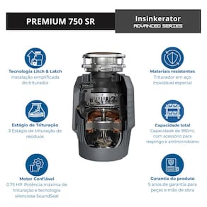 - Tensão 220V: NÃO É BIVOLT. - Amperagem: 10A. - Potência do motor: 0.75HP (50Hz - 60Hz) - 380W. - Motor: monofásico. - Tipo de alimentação: contínua. - Controle liga/desliga: interruptor pneumático. - Capacidade da câmara de trituração de 980ml. - Abertura da pia: 90mm (válvula americana 4 1/2"). - Distância entre entrada esgoto e abertura da pia: 30cm. - Ponto de esgoto: 40 a 50mm. - Tecnologia de trituração de 3 estágios: partículas ainda menores. - Os resíduos alimentares são triturados em pequenas partículas e descartados em segundos. - Seguro para uso com fossas sépticas com manutenção adequada. - Motor de indução de alto torque. - Proteção contra a sobrecarga. - Proteção do motor: reset automático. - Limpo, higiênico, prático, totalmente seguro e simples de usar. - Uso médio de água: aprox. 4L/dia por pessoa. - Fácil de instalar na maioria das pias: tecnologia Lift & Latch. - Solução definitiva para o lar, pois é compacto e fica embaixo da pia sem tomar espaço valioso para armazenamento. - Método fácil de descartar resíduos alimentares no lar, economizando tempo e ajudando a minimizar as idas à lixeira. - Ambientalmente responsável, ajudando a reduzir a quantidade de resíduos destinados aos aterros sanitários. - Consumo médio de energia elétrica: 3-4 KWH por ano. - Conexão do dreno: 1-1/2" (3.81 cm) - junta deslizante com amortecimento.