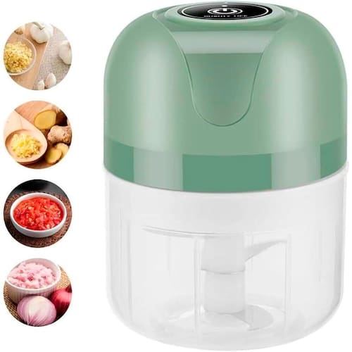 Mini processador de alimentos com 250ml de capacidade, ideal para cozinhas pequenas, viagens e camping. Possui três lâminas de aço inoxidável e operação simples por botão.Acessórios