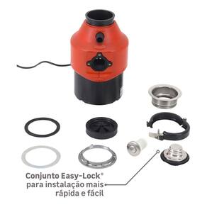 Fabricado com materiais de alta qualidade, como metal e plastico, e com componentes em aco inoxidavel, o triturador e robusto e duravel, projetado para resistir ao uso diario. Medindo 34,6 cm de altura, 23,9 cm de largura e 20 cm de profundidade, e pesando 7,20 kg, ele se adapta perfeitamente a cubas de 4,5 polegadas, tornando-se um complemento discreto e funcional para qualquer cozinha moderna. Alem disso, o produto possui um protetor integrado, garantindo seguranca durante o uso.