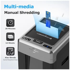 Com uma capacidade massiva de 300 folhas automático, o Triturador de Papel BONSEN permite triturar pilhas enormes de até 300 folhas automaticamente. Além disso, utilize a abertura manual para 12 folhas, grampos, cartões de crédito e CDs/DVDs com facilidade. Projetado para uso exigente em escritórios, oferecendo alta segurança com fragmentação microcorte que mede apenas 4 x 12 mm. Funciona em silêncio, com 58 dB, ideal para ambientes compartilhados. Conta com uma lixeira grande de 30,7 litros com modo de economia de energia automático após 10 minutos de inatividade. Móvel e fácil de transportar com rodízios.