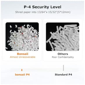 Com a Fragmentadora de Papel Bonsaii, você terá 60 minutos contínuos de funcionamento para destruir documentos confidenciais em casa ou no escritório. Seu sistema avançado de resfriamento e motor de alta eficiência garantem a operação sem interrupções. Este modelo de fragmentadora de papel microcorte profissional oferece nível de segurança superior ao P4, podendo destruir CDs, cartões de crédito, correspondências, grampos e clipes em partículas minúsculas de 5 x 12 mm, proporcionando máxima proteção às suas informações. Com velocidade de fragmentação opera de forma eficiente, evitando engasgos com a função de reversão e partida automática. Design personalizado com 4 rodízios universais para facilitar a movimentação, visor de lixo visível para verificar a capacidade do cesto a qualquer momento e proteção contra superaquecimento e sobrecarga para prolongar a vida útil do produto. A Fragmentadora de Papel Bonsaii é a escolha ideal para manter a segurança dos seus dados.