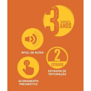 Material: Câmara e marteletes em aço inoxidável Acabamento em aço galvanizado e plástico Tecnologia de Instalação: Lift & Latch Compatibilidade: Compatível com a maioria das pias Redução de Ruído: Tecnologia básica de redução de ruído Proteção do Motor: Reset automático
