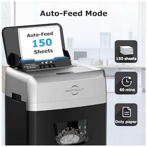 A Trituradora de Papel Automática BONSEN é perfeita para lidar com grandes volumes de papéis. Com capacidade de triturar até 150 folhas automaticamente e 12 folhas manualmente, você pode destruir correspondências, cartões e grampos sem esforço. Seu nível de segurança P4 Microcorte transforma o papel em pedaços minúsculos de 4 x 12 mm, garantindo a proteção da sua privacidade. Além disso, o pacote com 50 folhas de lubrificante afia, limpa e lubrifica as lâminas da trituradora. Compatíveis com a maioria das marcas de trituradoras, as folhas de lubrificante de tamanho 15,5 x 22,2 cm são ideais para uso doméstico, em home offices e escritórios.
