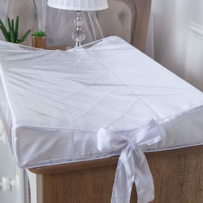 Superfície Antiderrapante: A superfície do trocador é projetada para ser restaurada, proporcionando estabilidade durante a troca de fraldas, sem escorregar. Além da capa em tecido possuir zíper para retirada e lavagem da peça.