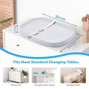 Trocador de bebê Bellababy, impermeável e antiderrapante, macio, fácil de limpar, leve, portátil, poliuretano (PU), 27,6* 19,2* 2,9, cinza — Proteção: o trocador Bellababy possui paredes contornadas e uma alça de segurança embutida para ajudar a manter seu bebê seguro durante a troca de fraldas, facilitando a troca de fraldas para você. - Superfície macia e lisa: o trocador é feito com material premium e oferece conforto ao bebê durante a troca de fraldas, ajudando a tornar cada momento o mais agradável possível. - Impermeável e fácil de limpar: basta limpar com um lenço umedecido ou enxaguar com água para resolver a bagunça causada pelas trocas de fraldas do bebê, facilitando a limpeza. - Tamanho conveniente: dimensionado (27,6 * 19,2 * 2,9) para caber na maioria dos trocadores padrão, o trocador oferece amplo espaço para seu bebê sem ser muito volumoso. - Portátil e leve: o peso de 3,3 libras torna este trocador fácil de transportar, então você está pronto para uma troca rápida em qualquer lugar.