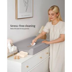 "O trocador de fraldas Blissful Diary para bebês em cinza claro oferece um visual neutro e moderno, aprimorando sem esforço o estilo do seu berçário com sofisticação discreta. Confusão inevitável e lavagem frequente? Oh, não se preocupe! Nosso trocador contornado possui uma superfície de poliuretano à prova d'água que limpa em segundos, garantindo uma superfície fresca e higiênica para sua próxima troca de fraldas. Menos roupa, pais mais fáceis. Descubra você mais feliz! Com tamanho padrão, superfície de poliuretano macio, acolchoamento de espuma de suporte e todos os recursos de segurança, certamente será um presente de chá de bebê que os novos pais e bebês vão adorar." - À prova d'água e limpa com pano - bagunça inevitável e roupas frequentes? Oh, não se preocupe! Nosso trocador contornado possui uma superfície de poliuretano à prova d'água que limpa em segundos, garantindo uma superfície fresca e higiênica para sua próxima troca de fraldas. Menos trocas de capa e menos roupa facilitam a criação dos filhos - Design confortável – Com uma capa de couro PU macia e segura e acolchoamento de espuma de suporte, nosso trocador cria um espaço aconchegante para o seu anjinho, transformando trocas de fraldas em momentos felizes de união para bebês e pais - Tamanho perfeito: o trocador de bebê mede 70 cm C x 40 cm L x 10 cm A, serve para todos os trocadores padrão e na maioria das cômodas. Com estilo leve, é conveniente para viagens, creches e muito mais - Artesanato seguro para bebês – os dois lados contornados e o cinto de segurança de liberação rápida mantêm o bebê seguro no trocador de fraldas. Para evitar o deslizamento durante as trocas de fraldas, tiras de segurança adesivas adicionais sob o trocador e a parte inferior antiderrapante mantêm a fralda presa à sua superfície - Design elegante e bom presente – este trocador cinza claro para bebês oferece um visual neutro e moderno que melhora seu berçário sem esforço com sofisticação discreta. É a primeira escolha para pais modernos, um presente incomparável de chá de bebê, presente de aniversário de bebê que os novos pais vão adorar