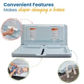 - Estação de troca montada na parede: trocador horizontal dobrável projetado para uso com bebês e crianças pequenas; ideal para banheiros comerciais, instalações institucionais, locais públicos e shoppings