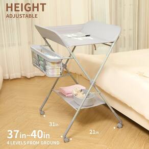 KARAOK Trocador dobrável para bebês com quatro alturas ajustáveis com rodas, cinza claro, fácil de mover, dobrável, economiza espaço, trilhos seguros e cinto de segurança, trilho de roupas, organizador grande de armazenamento - Altura ajustável de 4 níveis: a altura ajustável do trocador: 95, 96, 100 cm, 102 cm, atendendo a várias alturas, o que significa que não há mais dobras nas costas doloridas - Armazenamento múltiplo: o trocador de bebê tem um organizador de armazenamento do tamanho perfeito para armazenar fraldas, lenços, mamadeiras e outros itens. O design versátil desses trocadores portáteis para bebês também permite que você os use para secar panos - Portátil e dobrável: é fácil de dobrar quando não estiver em uso. É fácil de mover com quatro rodas universais. As rodas têm clipes de segurança para manter a mesa no lugar. O trocador dobrável cabe bem em uma pequena casa - Certificado rigoroso: Prioridade da segurança do bebê, esta mesa de troca de fraldas para bebês é feita com capa de tecido Oxford e acesso bem-sucedido à certificação CPC. A alça de tensão protege o bebê de cair enquanto o segura confortavelmente no lugar - Resistente e durável: o design da estrutura triangular sustenta o produto resistente e durável. O trocador giratório é fácil de montar com o design integrado. Perfeito como presente para recém-nascidos, bebês e pais com recém-nascidos