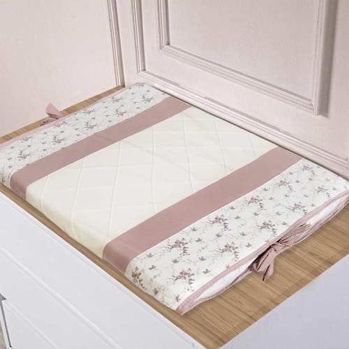 Feito com tecido 100% algodão e enchimento de espuma de poliuretano, o Trocador de Cômoda Fraldas Palha e Floral Rosê é macio e aconchegante. Além disso, possui um revestimento de plástico que facilita a limpeza, garantindo a higiene necessária para o bebê.