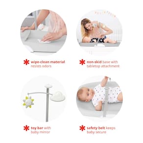 Skip Hop Trocador de fraldas para bebês estilo Wipe-Clean contornado com espuma acolchoada cinza - Superfície fácil de limpar: nosso trocador possui material limpável, por isso é simples de limpar após a troca de fraldas (além disso, não há necessidade de trocar as capas significa menos roupa). Melhor ainda? Não absorve líquidos ou odores - Barra de brinquedo dobrável para entretenimento de bebês: a barra de brinquedos embutida inclui um espelho seguro para bebês para envolver e entreter seu pequeno durante a troca de fraldas - Espuma contornada e acolchoada: projetada com uma forma contornada e espuma acolchoada, nosso trocador de fraldas oferece conforto e suporte ideais para o seu bebê. As laterais elevadas ajudam a manter seu bebê no lugar durante as trocas - Base antiderrapante com acessório de mesa: a base antiderrapante evita que o trocador deslize, garantindo que permaneça no lugar durante a troca de fraldas. Ele também vem com um acessório de mesa para maior estabilidade - Cinto de segurança embutido: equipado com um cinto de segurança, o trocador ajuda a proteger seu bebê no lugar durante a troca de fraldas. Suporta bebês de até 13,6 kg. (13,6 kg). Tamanho (cm): 79 C x 46 cm L x 6 A