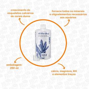 Graças ao crescimento dos organismos e de outros processos no aquário, os minerais são consumidos devendo, por esta razão, ser substituídos regularmente. Entre estes estão incluídos, principalmente, os elementos necessários como cálcio, magnésio, estrôncio e elementos da dureza dos carbonatos para o crescimento de esqueletos calcários de corais duros, algas calcárias e outros organismos de corais. Tropic Marin All-For-Reef contém todos estes componentes em formato altamente concentrado. Além disso, contém também todos os oligoelementos essenciais: iodo, bromo e flúor para o crescimento e consolidação de esqueletos de corais córneos, esponjas e crustáceos; selénio para a eliminação de radicais livres, assim como ferro, manganês, zinco, cobre, níquel, crómio, cobalto, molibdénio e vanádio para a formação de complexos enzimáticos importantes.