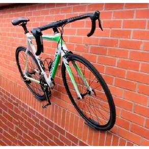 Fixado na parede através de parafusos, este suporte é seguro e resistente, acompanha apoio para as rodas, proporcionando maior firmeza para a bicicleta. Ideal para bikes MTB ou de outros quadros como Speed.