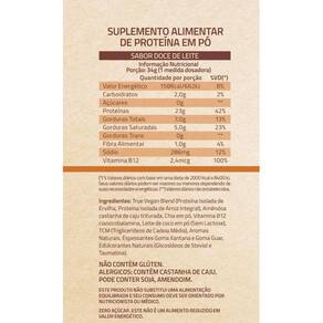 True Vegan Doce De Leite 418G - Treu Source A true vegan é a proteína isolada do arroz e da ervilha que veio atender ao público vegetariano e vegano com muita qualidade e sabor. A true vegan alinha a pureza dos ingredientes ao bem estar e rendimento físico. São 23g de proteína orgânica por dose que fornecem um perfil de todos os aminoácidos essenciais - incluindo 5,5g de bcaas - além de fornecerem 5g de glutamina para servirem de suporte no ganho de massa muscular e na redução do tempo de recuperação após o exercício. A combinação das proteínas de ervilha e do arroz com adição da amêndoa triturada e da chia em pó proporcionam uma cremosidade única. Tendo em vista a recorrente deficiência de vitamina b12 em dietas vegetarianas, o true vegan fornece 100% das necessidades diárias desta vitamina. Com baixo teor de sódio e carboidrato, a true vegan adoçada com edulcorantes naturais estévia, taumatina e maltitol . Modo de uso: Diluir 1 medidor em 250ml de água, podendo ser utilizado no pós treino ou outro momento do dia, conforme prescrição do nutricionista ou médico.