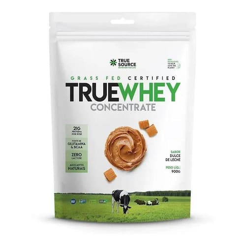 True Whey Concentrado Zero Lactose 900G Dulce De LecheA true source traz a mais pura e nutritiva das proteínas, agora na versão concentrada e livre de lactose, a true concentrate. Uma proteína limpa, leve, com colágeno verisol e os mais puros ingredientes, pois a true é assim, pura, natural e limpa.Além disso você estará consumindo uma proteína que preserva compostos bioativos como a lactoferrina e imunoglobulinas essenciais para saúde e imunidade. Natural para que você possa aproveitar o que existe de melhor na natureza. A proteína da true source tem um sabor inigualável com uma cremosidade única, deixando você sempre com um sabor de quero mais são adoçadas com adoçantes naturais e não usam aromatizantes ou corantes artificiais.Não contém glúten.Não contém lactose.Alérgicos: contém derivados do leite e soja.Imagens meramente ilustrativasTabela pode variar conforme sabor