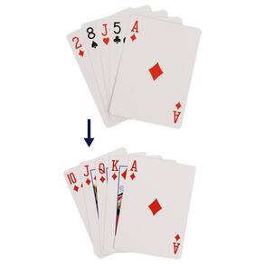 Material: Tamanho do papel: 6,4 x 8,8 cmMaterial: papel Tamanho: 6,4 x 8,8 cmVisual Card Change Illusion — Transforme instantaneamente uma mão bagunçada de cartas aleatórias em um straight flush perfeito para uma revelação mágica poderosa e surpreendente. Ótimo para magia de close-up — Projetado para apresentações presenciais, mágica de mesa e shows para pequenos públicos, onde cada reação conta. Deck de truques pré-construído — Cartas especialmente organizadas fazem o trabalho por você, sem a necessidade de truques difíceis para criar um efeito de nível profissional. Tamanho padrão de pôquer — mede 6,4 x 8,8 cm para facilitar o manuseio e ser compatível com outros decks em sua rotina mágica. Material de papel durável — O papel de alta qualidade garante flexibilidade, desempenho suave e uso duradouro para truques repetidos.