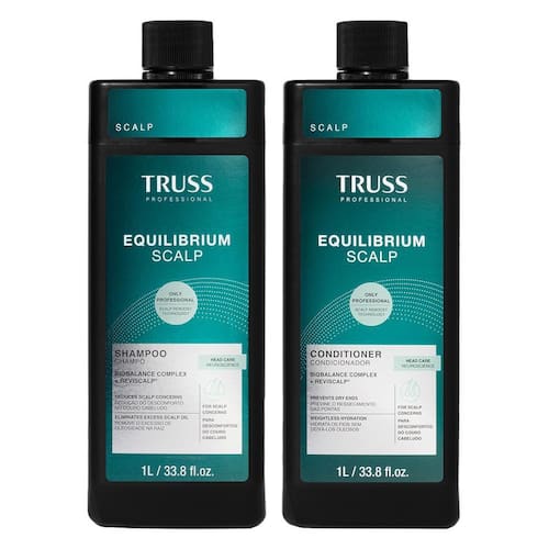 Combo Truss Equilibrium Scalp: Shampoo 1L + Condicionador 1L Este combo traz o Shampoo e o Condicionador Equilibrium Scalp em embalagens de 1 litro, ideais para quem busca praticidade e maior duração. Com fragrância fresca e ação e revitalizante, este combo garante limpeza profunda, hidratação intensa e controle da oleosidade para cabelos mais saudáveis. SHAMPOO EQUILIBRIUM SCALP Shampoo anticaspa com pH adaptado ao couro cabeludo, limpa profundamente, remove impurezas e controla a oleosidade. Possui fragrância fresca de Neroli, Bergamota e Flor de Laranjeira. Limpeza profunda; Controle da oleosidade; Fragrância refrescante. - Como usar Aplique o shampoo sobre os cabelos molhados, massageie suavemente e enxágue. Repita a operação se necessário. CONDICIONADOR EQUILIBRIUM SCALP Condicionador que hidrata e nutre os fios, previne o ressecamento das pontas e proporciona maciez e desembaraço. Fragrância fresca de Neroli, Bergamota e Flor de Laranjeira. Hidratação intensa; Maciez e desembaraço; Fragrância refrescante. - Como usar Após o uso do shampoo, retire o excesso de água dos fios e distribua o condicionador no comprimento e pontas. Massageie, desembarace, deixe agir por 2 minutos e enxágue. Marca: Não Informado