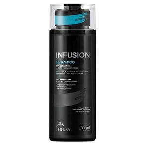 Shampoo INFUSION: com pH fisiolgico, sem adio de sal ou corantes, limpa e trata as fibras, proporcionando brilho intenso. Ao anti-aging e proteo da cor de cabelos coloridos. Ativos principais: Exclusive H300, Nano Repair, Kerahair e Keratin Vegan.