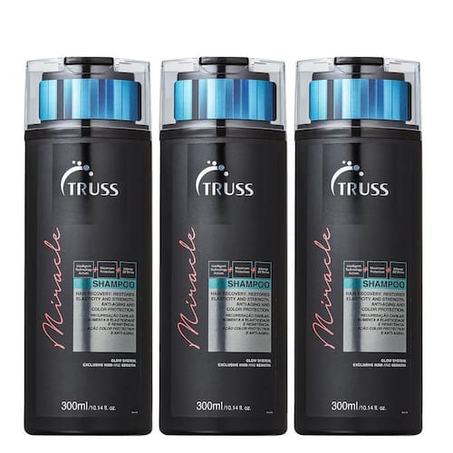 O Shampoo TRUSS MIRACLE é para quem busca uma limpeza suave e uma reconstrução poderosa para os fios. Ideal para todos os tipos de cabelo, o shampoo reconstrói os fios que sofreram com danos causados pelo tempo e a química. Tudo isso, sem abrir mão de um brilho intenso, com efeito 3D e maciez. Possui em sua formulação a queratina como um de seus principais ativos, uma proteína presente naturalmente nos fios, que proporciona aumento da resistência do cabelo para que ele retenha a umidade, aumentando sua hidratação, e capacidade de receber nutrientes.