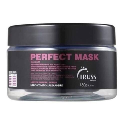 Máscara de tratamento para todos os tipos de cabelo. Kit Truss Alexandre Herchcovitch Perfect Trio resgata a resistência e a vitalidade perdida no dia a dia. A Máscara possui fórmula rica em ativos que hidratam e reparam a cutícula danificada com as agressões diárias. Além disso, ele forma uma película protetora que evita o frizz e reduz o volume. Sua embalagem conta com estampas exclusivas criadas pelo estilista Alexandre Herchcovitch. Máscara: Restaura a resistência perdida com as agressões diárias. Ação: Bio Affinity Complex: Reparam a cutícula fragilizada por processos químicos ou agressões externas. Nano Repair: preenche as áreas danificadas no interior da fibra enquanto forma um adesivo sobre as cutículas para conservá-las sempre fechadas. Polycare: polímero que forma um filme que proporciona maciez e brilho enquanto reduz o volume e o frizz e define os cachos. Quatercare: polímero condicionante que facilita o pentear, proporciona corpo e manutenção da cor e reduz o frizz. Ácido Hialurônico: hidrata e preenche a porosidade da fibra capilar. Panthenol: tonifica o couro cabeludo, além de criar uma camada elástica na fibra capilar que hidrata e restaura os fios. Colágeno: devolve elasticidade e flexibilidade aos fios. Ean: 7898947943831
