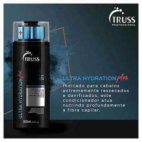 Shampoo para cabelos danificados. Truss Ultra Hydration Plus Shampoo restaura a hidratação e aumenta a resistência, brilho e maciez dos fios. A nanotecnologia de Truss Ultra Hydration Plus Shampoo penetra profundamente nos fios e repõe umidade perdida com as agressões químicas e mecânicas. Além disso, reduz o volume e o frizz. Você conquista um cabelo renovado, resistente e saudável logo na limpeza.