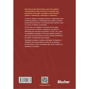 Este livro é uma obra técnica, que visa explicar e desmembrar todos os fatores e situações que permeiam a inovação, tornando-a mais factível quanto a elaboração, realização e resultante.A obra se destina a qualquer pessoa e organização que já efetue projetos ou atividades de inovação e precise exatamente aprimorar os conhecimentos quanto o que é e como se efetivar a inovação.O livro não visa redefinir o conceito de inovação, e ao contrário, já utiliza e explana os conceitos e definições das Teorias da Inovação. O livro, sim, traça e exemplifica situações e fatos que podem ocorrer, e que esses, de uma forma ou outra, possam corroborar ou tolher as iniciativas de inovação.Quaisquer pessoas, empresas privadas, fundações e intuições de ensino podem se valer do conteúdo, a fim de evoluir com as atividades que visem realizar ou explanar a inovação.
