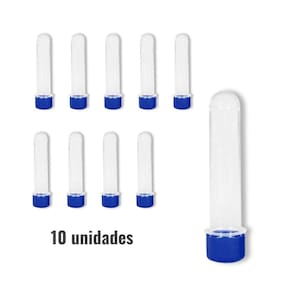 Contém: 10 Tubos de Ensaio Tubetes para Lembrancinhas com Tampa Azul Escuro