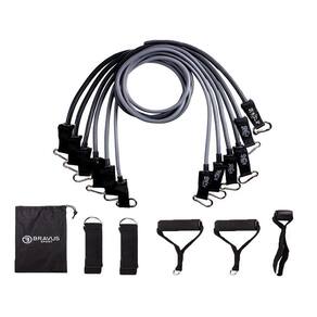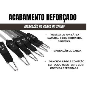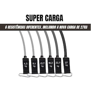 Tubing pro extreme elástico extensor carga 95kg Kit tubing extreme pro 95kg Chegou a hora de aumentar a carga do seu treino e ultrapassar todos os limites com o novo kit tubing extreme pro 95kg São 6 elásticos tubings com diferentes resistências totalizando 95 quilos de carga o novo tubing extreme bravus se adapta a diferentes níveis de treino, do nível iniciante com as cargas mais leves, entre 4,5kg e 9,1 kg até o nível avançado, com elásticos com cargas de 13,7, 18,2, 22,7 e 27kg A nova linha kit tubing extreme 95 kg bravus pro 12 peças vem com acabamento reforçado. O elástico tubing é conectado em um tecido de alta resistência, com marcação do peso correspondente em kg e ganchos largos Diferencial 1. Elástico tubing antipressão de látex de alta qualidade em degradê cinza 2. Mosquetões largos em aço resistente 3. Tiras em tecido reforçado com costura firme 4. Marcação do peso no tecido 5. 6 resistências diferentes, incluindo a nova carga de 27kg 6. Carga máxima de 95 quilos Cada elástico tem 1,20 m de comprimento com garras em metal. Todas as imagens do anúncio correspondem ao produto real. É possível realizar os exercícios usando 1 ou até 6 elásticos ao mesmo tempo, criando assim, mais de 40 níveis diferentes de resistência. O novo kit tubing extreme pro 95kg é tão completo que é possível fazer exercícios para trabalhar diversos grupos musculares - tanto superiores, como: braços, peitoral e costas, quanto inferiores: glúteos, coxas, pernas e panturrilhas. Finalidade: ganho de força, resistência, aumento de massa magra, tonificação muscular e melhora de condicionamento físico O kit inclui: 1 elástico cinza super claro de 4,5 kg de resistência 1 elástico cinza claro de 9,1 kg de resistência 1 elástico cinza médio de 13,7 kg de resistência 1 elástico cinza escuro de 18,2kg de resistência 1 elástico preto de 22,7 kg de resistência 1 elástico preto intenso de 27 kg de resistência 2 alças de mão revestidas de espuma 2 tiras para tornozelo 1 âncora para colocar na porta 1 bolsa em nylon