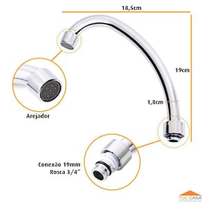 Possui design sofisticado e arejador fixo - Bica e arejador produzidos em ABS cromado, materiais de excelente qualidade. além de colaborar com a economia de água, confere praticidade tornando-a ideal para sua torneira de cozinha.