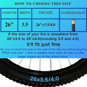 Tubo de gordura de 66 cm (26") - ?26 x 3,5 – 4 ? Tubos internos de bicicleta de 66 cm com válvulas Schrader de 32 mm, largura do pneu variando de 8,9 cm a 10 cm. Atenção: verifique o tamanho do seu pneu antes de comprar - ?Proteção de perfuração aprimorada para uma condução segura?: o tubo da bicicleta possui tecnologia integrada resistente a perfurações, oferecendo proteção adicional contra objetos pontiagudos como vidro, pregos e detritos. Isso ajuda a evitar rastros e garante passeios mais seguros - ?Instalação e manutenção rápidas?: Além dos dois tubos internos, também oferecemos alavancas de pneu e patches de emergência para pneus. As barras de alavanca do pneu podem ajudá-lo a instalar os tubos internos rapidamente, e os patches de pneu de emergência podem permitir que você volte à estrada rapidamente em situações de emergência - ?Borracha butílica premium para durabilidade?: Feito de borracha butílica de alta qualidade, este tubo de bicicleta oferece excelente retenção de ar e resistência ao desgaste e envelhecimento. Oferece desempenho duradouro, reduzindo a necessidade de inflação frequente e tornando-o perfeito para uso diário - ?Serviço pós-venda de 365 dias?: Caso você tenha algum problema com nosso produto, basta tirar algumas fotos e entrar em contato conosco. Responderemos prontamente para garantir que seu valioso tempo não seja desperdiçado